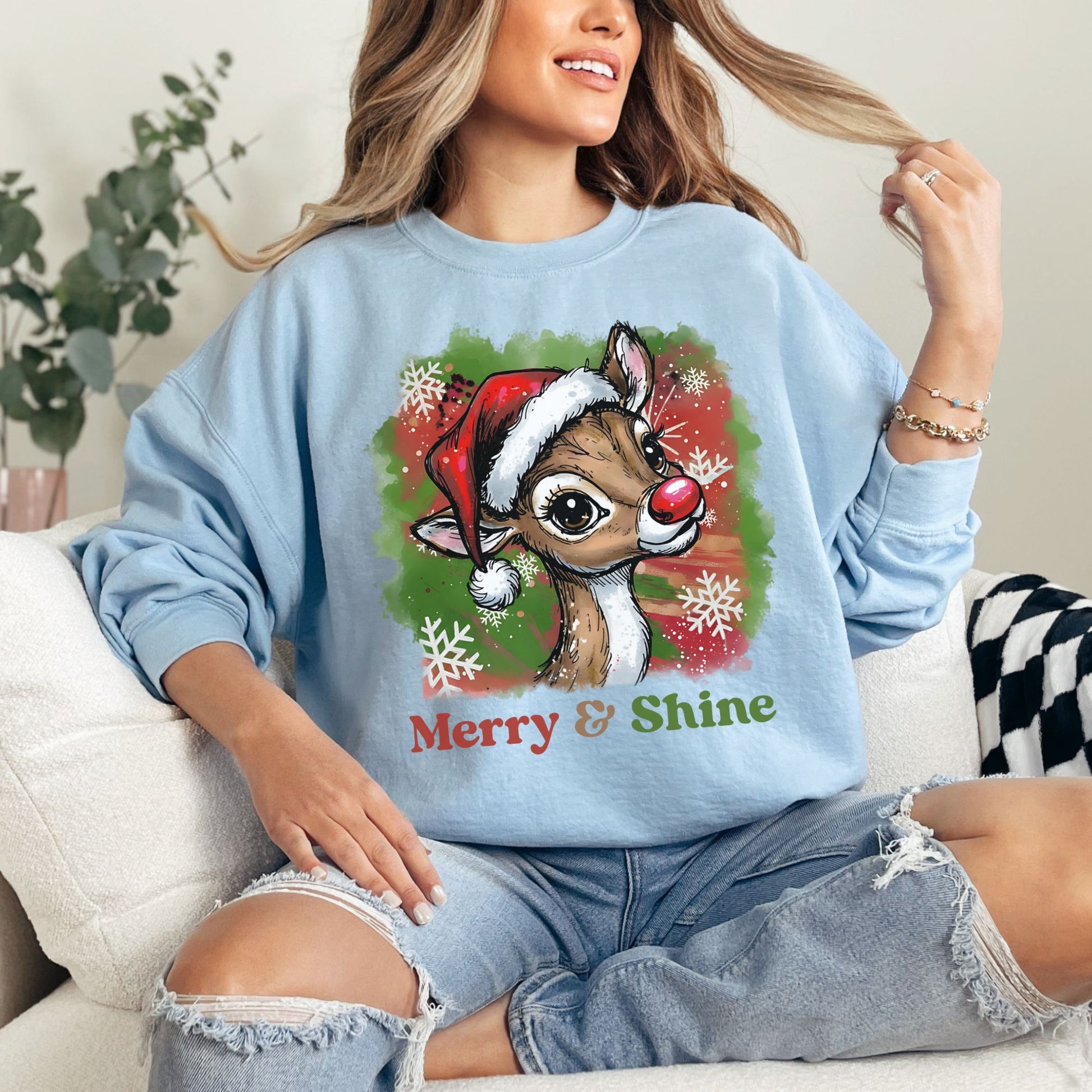 Stay cozy and festive this holiday season with the Merry & Shine Christmas Reindeer Sweatshirt. Perfect for adults looking to spread Christmas cheer and stay warm during winter. Ideal for Christmas celebrations and holiday gatherings.