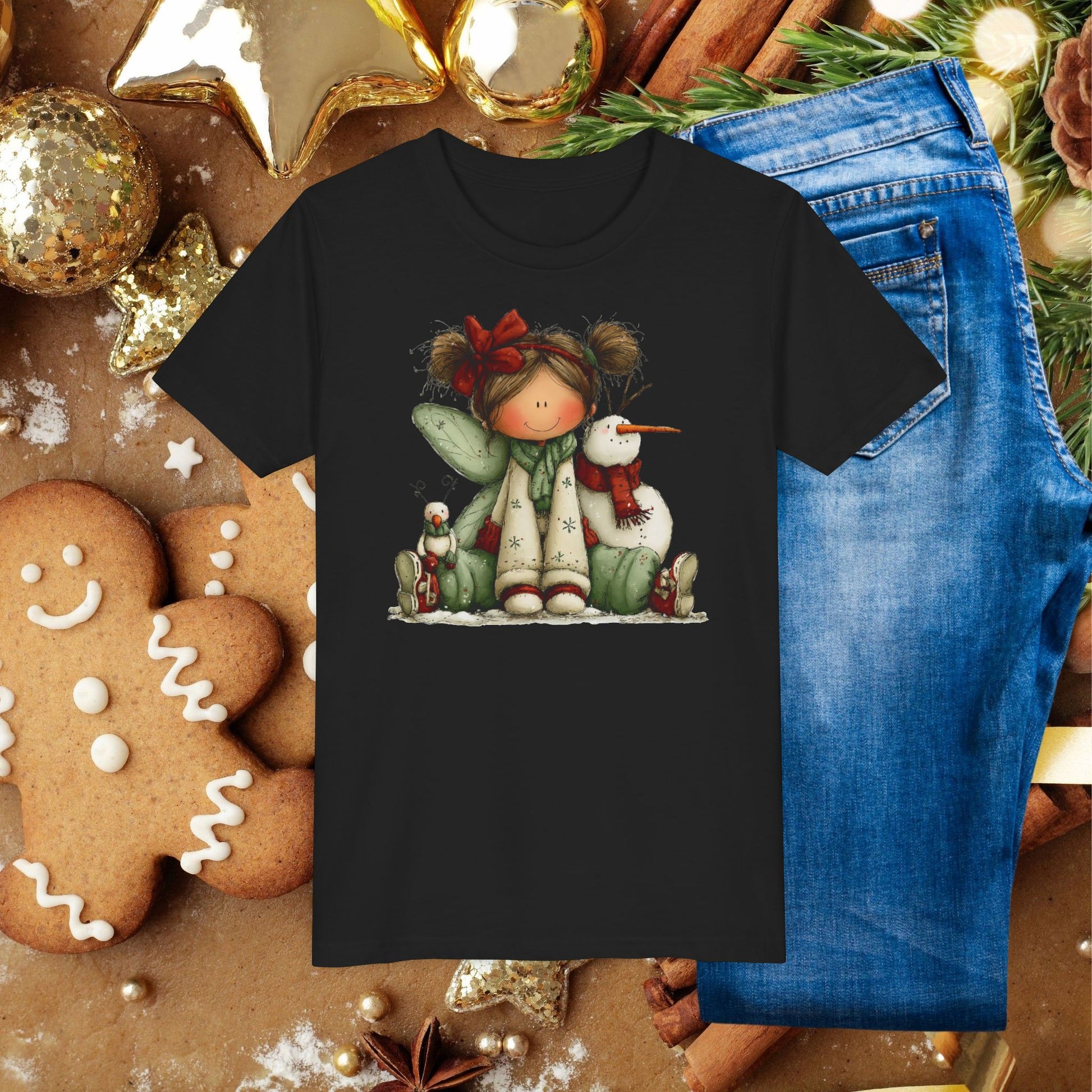 Kids Christmas Fairy Tee — Cute Girl with Snowman Holiday Shirt