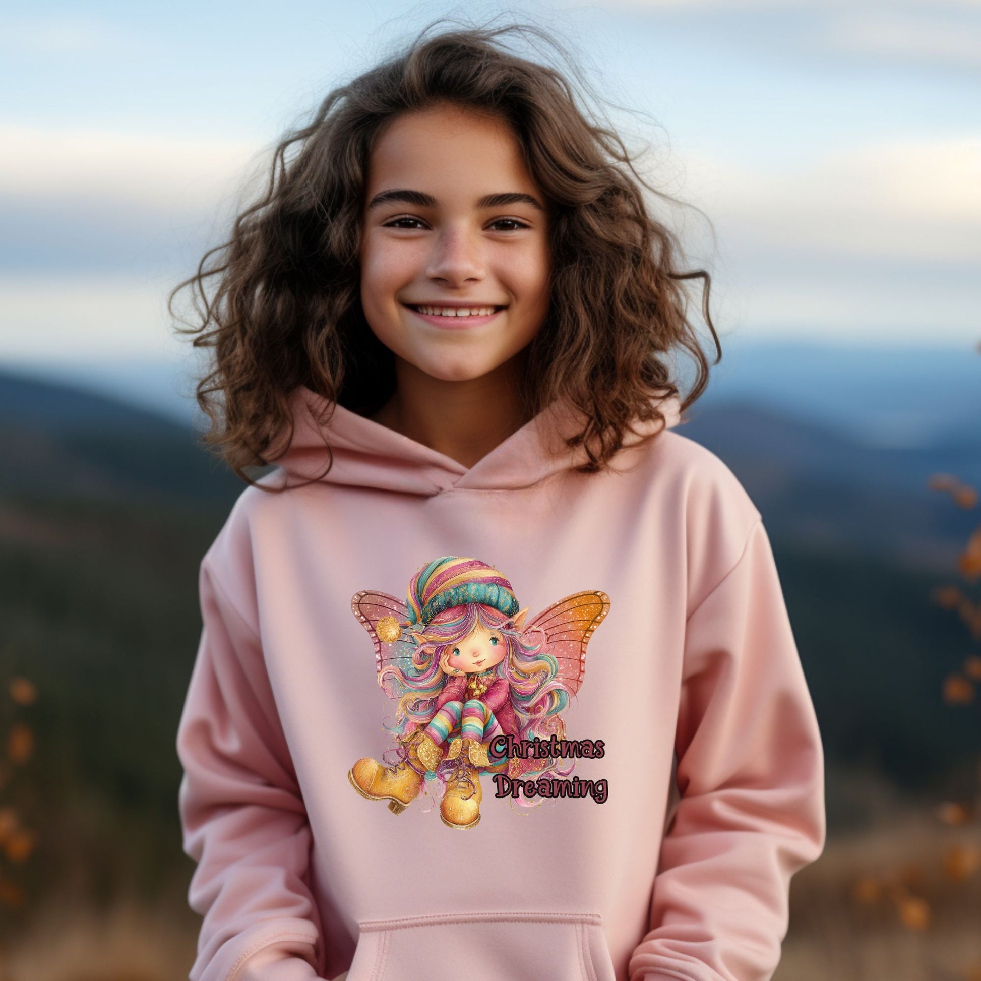 Kids Holiday Fairy Hoodie - Cute Elf Girl Graphic Sweatshirt