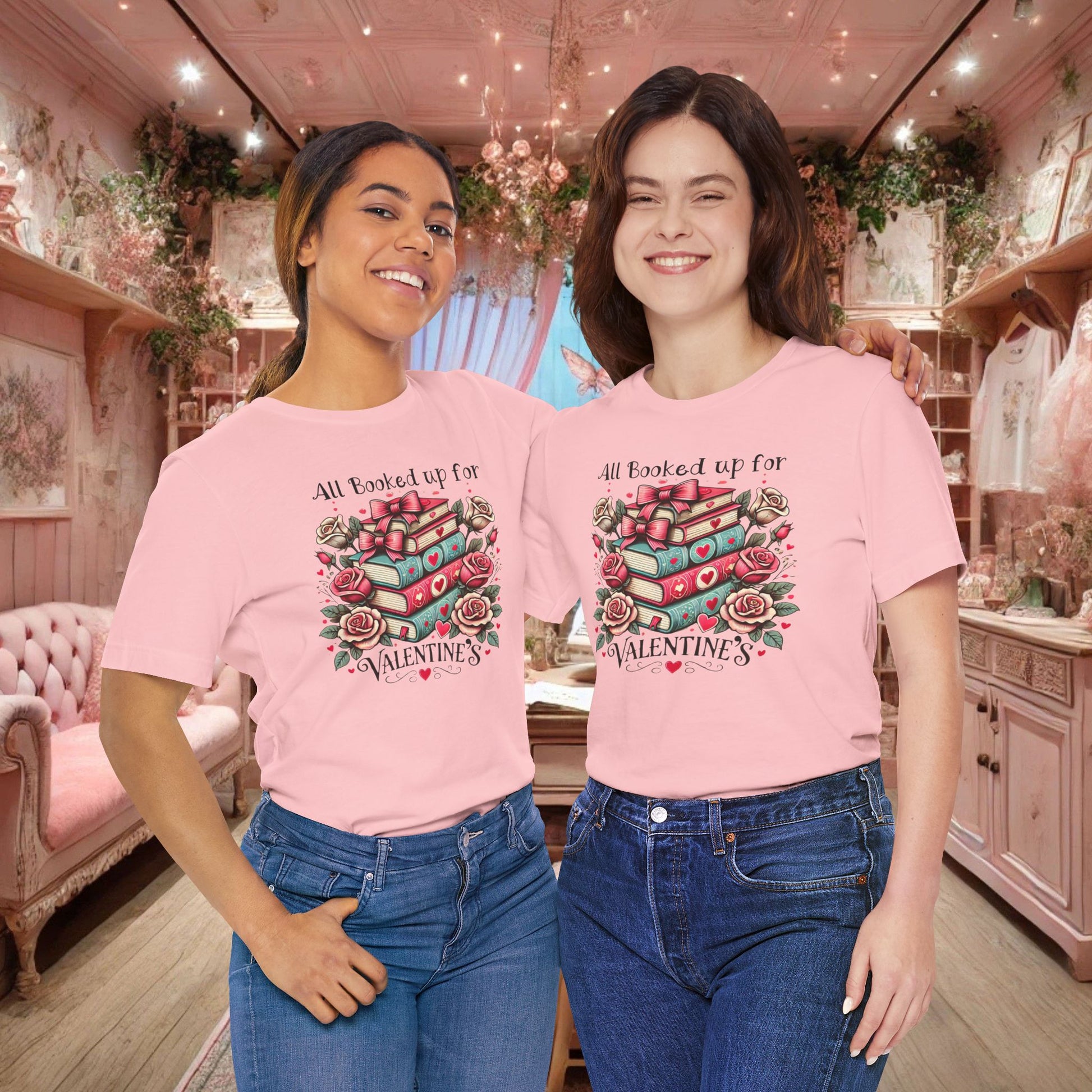 Valentine's Booklover T-Shirt — "All Booked Up For Valentine’s" Literary Tee