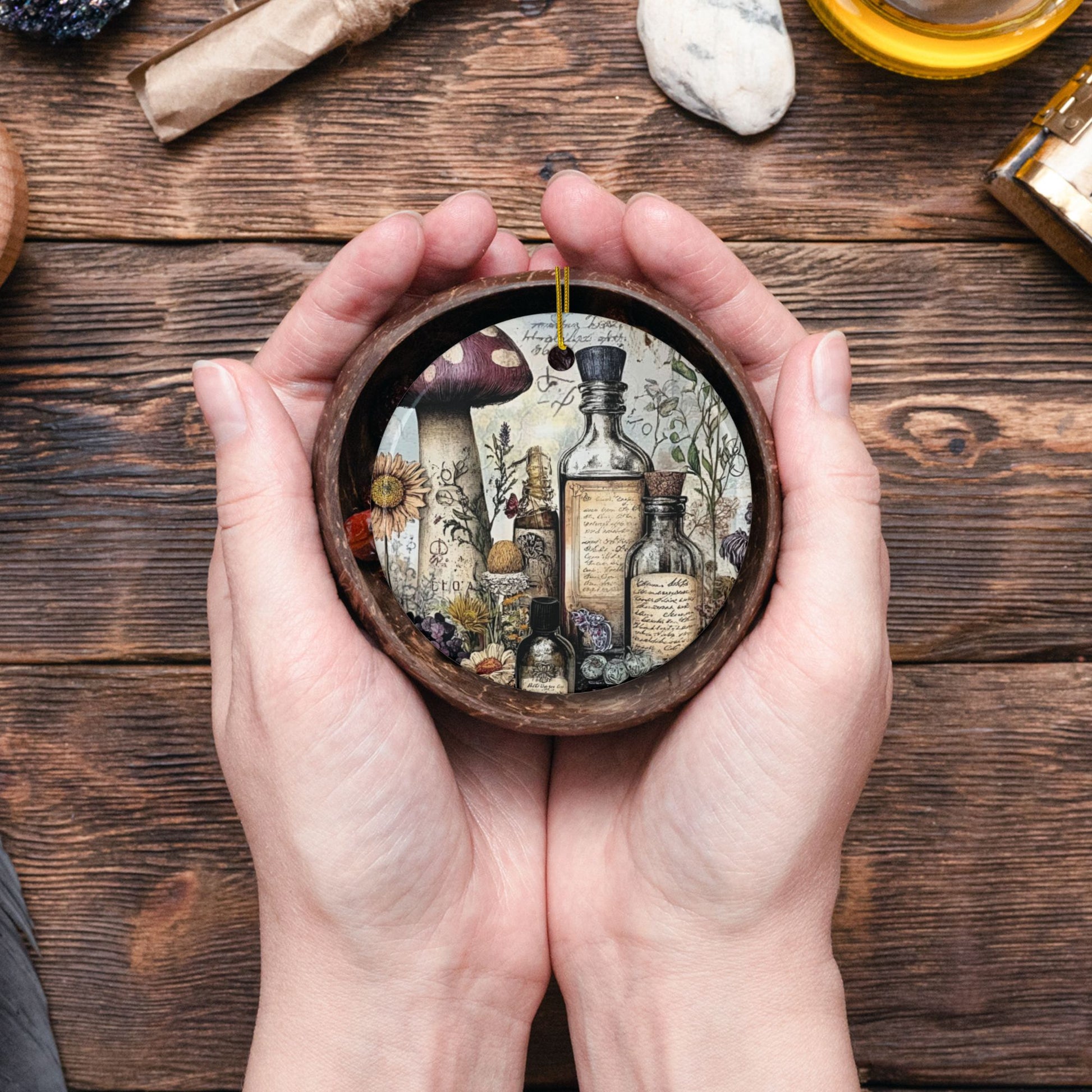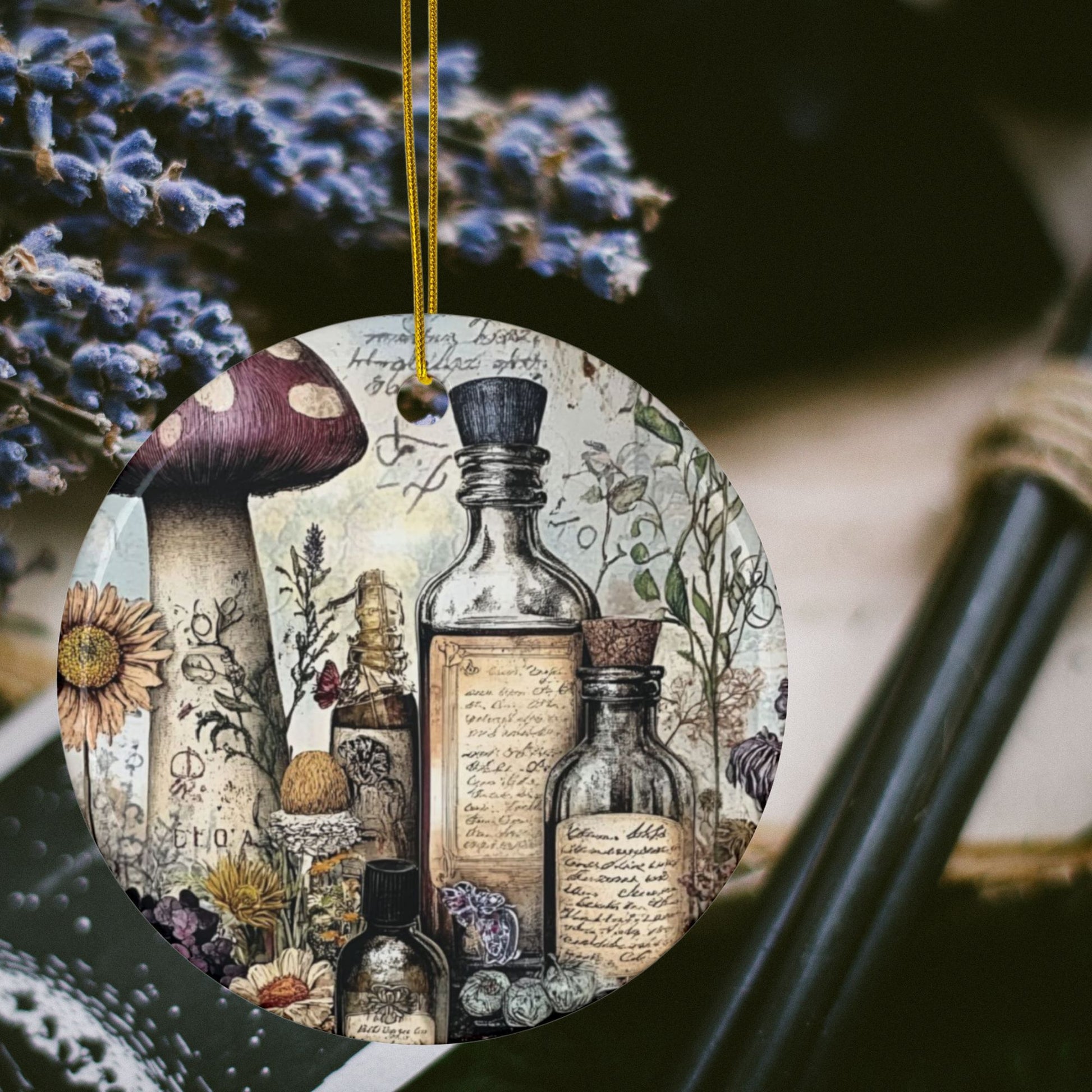 Witchy Apothecary Potion Bottle Ornament - Perfect for those who love a touch of magic in their holiday decor. This ornament adds a mystical vibe to your tree or home decor. Ideal for Halloween, Christmas, and those who love all things witchy and mystical.
